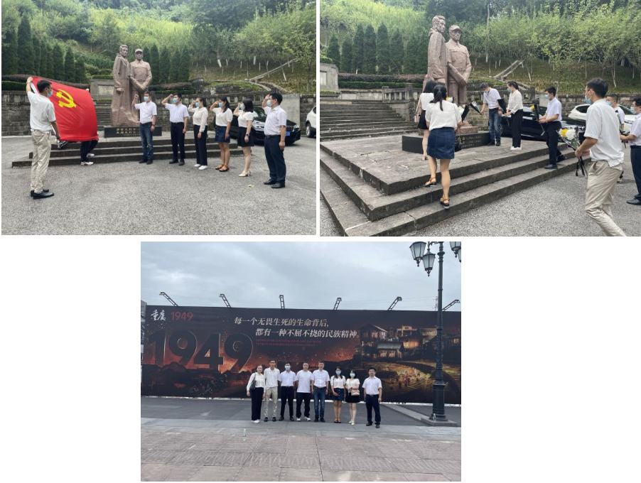 活動簡介:為推動黨史學習教育常態(tài)化長效化,引導全體黨員牢記黨的宗旨、珍惜黨員身份、永葆先進本色,7月22日,規(guī)劃發(fā)展部黨支部組織開展“追尋紅色記憶,傳承革命精神”主題黨日活動。全體黨員前往紅巖文化景區(qū)歌樂山松林坡參觀學習,以重溫入黨誓詞和獻花儀式表達對英雄們深切的懷念及崇高的敬意?;顒舆€組織觀看了歷史舞臺劇《重慶·1949》?;顒映尚В捍舜位顒幼岦h員們在參觀學習的過程中深入了解了英雄烈士的革命事跡,通過豐富的歷史文物、詳實的文獻資料進一步了解革命的艱苦歷程,追憶英雄們保家衛(wèi)國的豐功偉績。大家紛紛表示,將繼承革命先輩遺志、發(fā)揚優(yōu)良傳統(tǒng),牢記初心使命、堅定理想信念,永葆干事創(chuàng)業(yè)的激情與熱情,自強不息、奮斗不止,為集團的高質量發(fā)展貢獻一己之力。