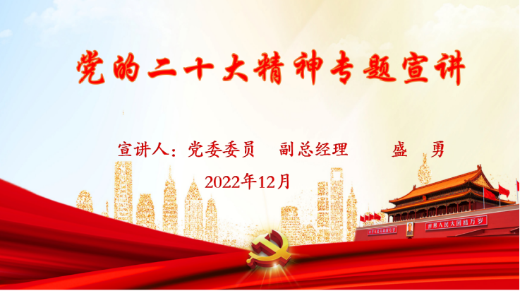 會上,盛勇同志以《學(xué)習(xí)二十大·書寫新篇章》為題講授黨課,重點宣講了黨的二十大的重大意義、二十大報告的邏輯結(jié)構(gòu)與主要精神,并結(jié)合支部實際工作,提出三點要求:一是要深刻領(lǐng)會準(zhǔn)確把握黨的二十大精神實質(zhì),準(zhǔn)確把握黨的二十大提出的一系列新觀點、新論斷、新思想、新戰(zhàn)略、新要求,堅定不移地沿著習(xí)近平總書記指引的方向奮勇前進(jìn),真正做到學(xué)深悟透。二是要深入學(xué)習(xí)貫徹黨的二十大精神,從全面學(xué)習(xí)、全面把握、全面落實上下功夫,要對各項目標(biāo)和任務(wù)進(jìn)行細(xì)化,有針對性地拿出落實的具體方案,制定明確的時間表、施工圖,扎扎實實向前推進(jìn)。三是要把黨的二十大戰(zhàn)略部署轉(zhuǎn)化為集團(tuán)、部門的工作任務(wù),抓好歲末年初沖刺攻堅,謀劃好明年的各項工作,做到既為一域增光、又為全局添彩。