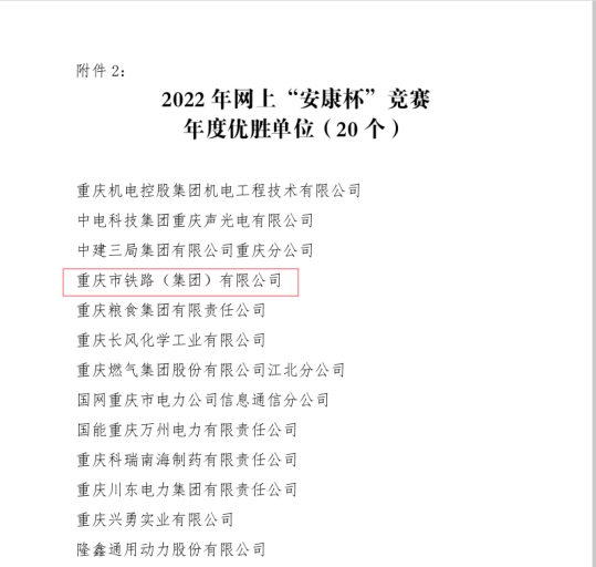 重慶市鐵路集團(tuán)榮獲“優(yōu)秀集體”