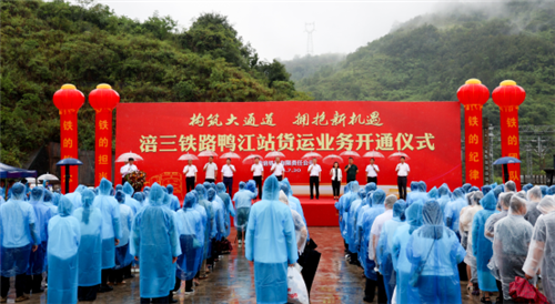 在開通儀式活動現(xiàn)場,武隆區(qū)委副書記、區(qū)長左軍,武隆區(qū)委常委、組織部部長榮鑫,武隆區(qū)副區(qū)長劉印,重慶交通開投集團黨委委員、副總經(jīng)理鄭志明,市鐵路集團監(jiān)事會主席、工會主席陳靜,市鐵路集團二級專務(wù)員兼南涪公司黨委書記、董事長馬明澤,國鐵成都局集團重慶車務(wù)段副段長虞好,國鐵成都局集團重慶物流中心副總經(jīng)理張凱,武隆區(qū)有關(guān)部門和單位負責人,市鐵路集團運營管理部、安全質(zhì)量部、黨委宣傳部負責人,南涪公司部分客戶企業(yè)代表和南涪公司部分干部職工代表,共同見證了涪三鐵路開通鴨江站貨運業(yè)務(wù)的歷史性時刻。開通儀式由市鐵路集團黨委副書記、總經(jīng)理馬虎主持。