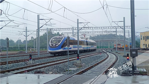 6月22日15時,伴隨著一聲清脆的鳴笛,身披藍色外衣的電客車??吭阢~梁西站,在一片歡呼聲中,重慶市域鐵路璧銅線熱滑試驗圓滿完成。