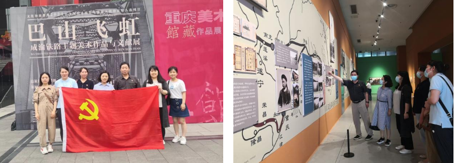 活動簡介:6月8日下午,集團審法財務黨支部在集團監(jiān)事會主席、工會主席陳靜和財務總監(jiān)馬明澤的帶領下,來到重慶美術館開展“喜迎二十大,感受成渝鐵路建設發(fā)展”主題黨日活動?;顒映尚В夯顒又校恍腥俗屑殔⒂^了“巴山飛虹——成渝鐵路主題美術作品與文獻展”,展覽共展出了“速度成渝鐵路”主題美術作品和文獻資料100余件,涵蓋連環(huán)畫、攝影、油畫、雕塑等多種形式,全面展示了七十年來“成渝鐵路”主題創(chuàng)作的歷史變遷。參觀結束后,大家紛紛表示,對歷史最好的致敬就是書寫新的歷史,將立足崗位職責,認真做好各項本職工作,為推動都市快線事業(yè)高質量發(fā)展作出應有貢獻。